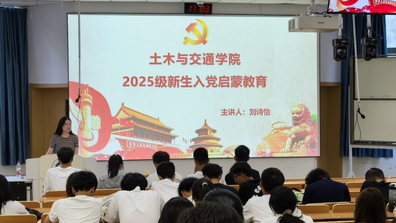 为深入学习贯彻习近平新时代中国特色社会主义思想,引导广大新生增强对党的认同感、归属感和向心力,10月16日下午,土木与交通学院党委副书记副院长肖怡为2025级新生讲授入党启蒙第一课。